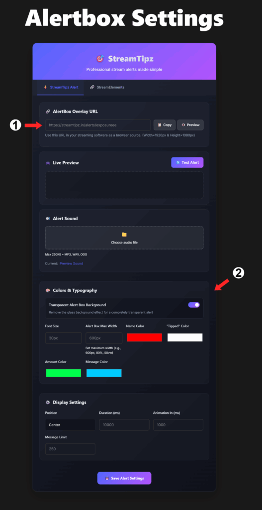 - Enter these in the StreamTips AlertBox settings under the StreamElements tab